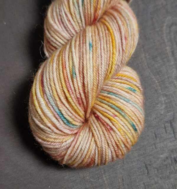Garn: StinaMarias handfärgade strumpgarn. 75 % merinoull, nylon 25 %. 50 g = ca 200 meter.