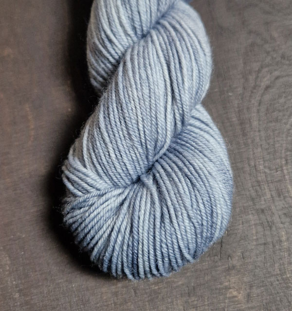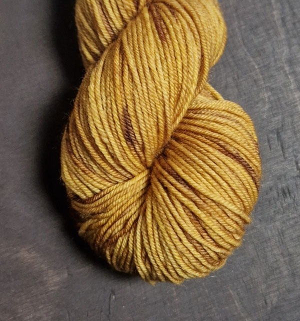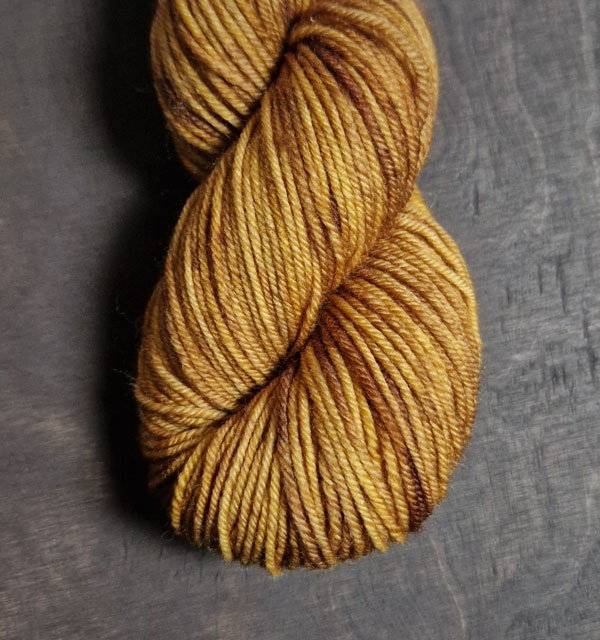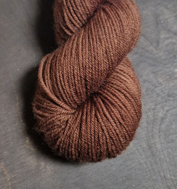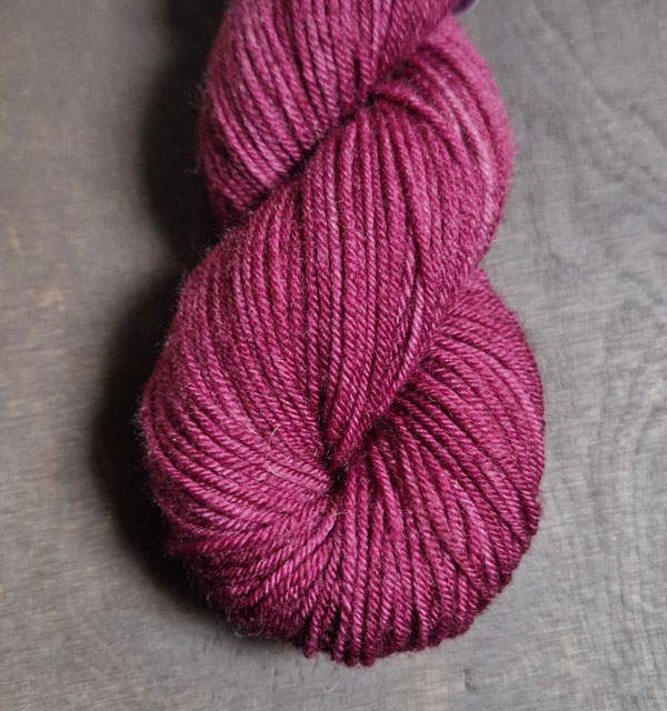 Garnkittet innehåller beskrivningen på handledsvärmaren Freja och en härva handfärgat strumpgarn.